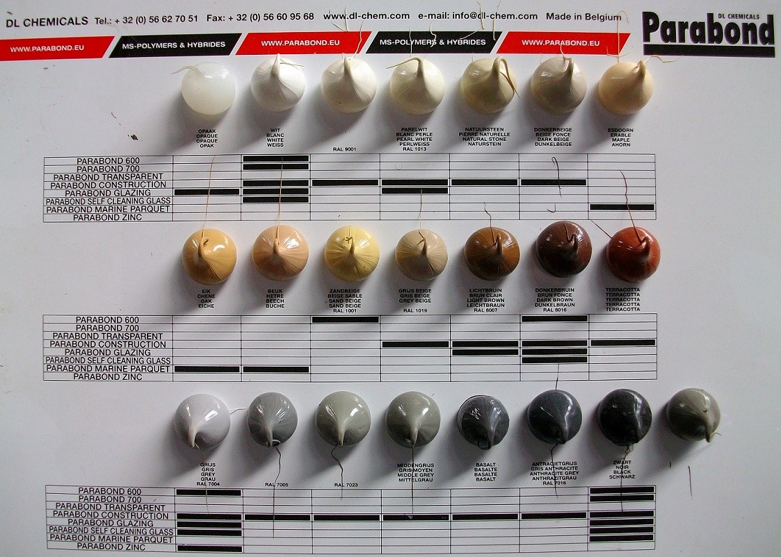TECHNISCHE GEGEVENS Vochtbestendigheid Zeer goed Vorststabiliteit Niet vorstgevoelig VERPAKKING EN KLEUR 25 kokers van 290 ml/doos - 48 dozen/pallet Wit, grijs RAL 7004, zwart, beige RAL 1001, donkerbruin RAL 8016 20 worsten van 600 ml/doos - 45 dozen/pallet Wit, zwart Andere kleuren zijn verkrijgbaar op aanvraag mits gepaste hoeveelheid (75 kokers of veelvoud). VERWERKING Voorbereiding De ondergrond moet vast, voldoende stevig en schoon, stof- en vetvrij zijn. De ondergrond hoeft niet volledig droog te zijn (aardvochtig). De te verlijmen materialen indien nodig ontvetten met Parasilico Cleaner, MEK, brandalcohol, ethanol. Primer Voor sterk zuigende ondergronden adviseren wij het gebruik van Primer DL 2001. De gebruiker dient zelf te controleren of het product voor zijn toepassing geschikt is (hechtingsproeven). Eventueel onze technische dienst raadplegen. Aanbrengen • Parabond 600 met bijgeleverde spuitmond in rillen of dotten aanbrengen op de ondergrond of op het te verlijmen element. De rillen moeten in verticale banden aangebracht worden, regelmatig over het te lijmen vlak verdeeld. Breng de rillen parallel aan elkaar aan, zodat tussen de rillen luchtvochtigheid tot de lijm kan toetreden. • Het te verlijmen deel zo snel mogelijk, uiterlijk binnen 10 minuten aanbrengen (afhankelijk van de temperatuur en relatieve luchtvochtigheid). Het materiaal kan nu nog gecorrigeerd worden. • Daarna goed aandrukken of licht aankloppen met een rubber hamer. • Hanteer tussen de te lijmen delen een ruimte van 3,2 mm (d.m.v. afstandblokjes of foamtape), zodat de lijm in staat is vervormingen op te vangen (o.a. van belang in buitentoepassingen of onder vochtige omstandigheden). • De interne sterkte is direct na aanbrengen zodanig dat verlijmingen zonder klemmen of tijdelijke ondersteuningen mogelijk zijn. Reiniging Eventueel langs randen vrijkomende lijm kan met een plamuurmes worden afgewerkt. Niet uitgeharde lijmresten zijn met Parasilico Cleaner te verwijderen. Uitgeharde lijm mechanisch verwijderen. Overschilderen Overschilderbaar met de meeste verven op water- en solventbasis. Na 48 uur moet het oppervlak eerst gereinigd worden vooraleer het kan worden overschilderd. Voorafgaande testen zijn noodzakelijk. Alkydverven hebben een verlengde droogtijd nodig. VEILIGHEID Gelieve de veiligheidsfiche te raadplegen (verkrijgbaar op eenvoudig verzoek). BEPERKINGEN • Voegen die blootgesteld zijn aan een bestendige wateronderdompeling en bij lokalen met permanente hoge relatieve vochtigheid • Voegen met een breedte of diepte < 5 mm • Op bitumineuze ondergronden: gebruik hiervoor onze Paraphalt • Op polycarbonaat en polyacrylaat : gebruik hiervoor onze Parasilico PL • Parabond 600 is niet geschikt voor verlijmen op PE, PP, PA, Teflon® en bitumen. • Een goede ventilatie tijdens verwerken en tijdens uitharden is belangrijk. TECHNISCHE GOEDKEURINGEN IKI voor het gebruik in ziekenhuizen als lijmkit voor wandpanelen Leeds certificate for low VOC (getest door Eurofins)