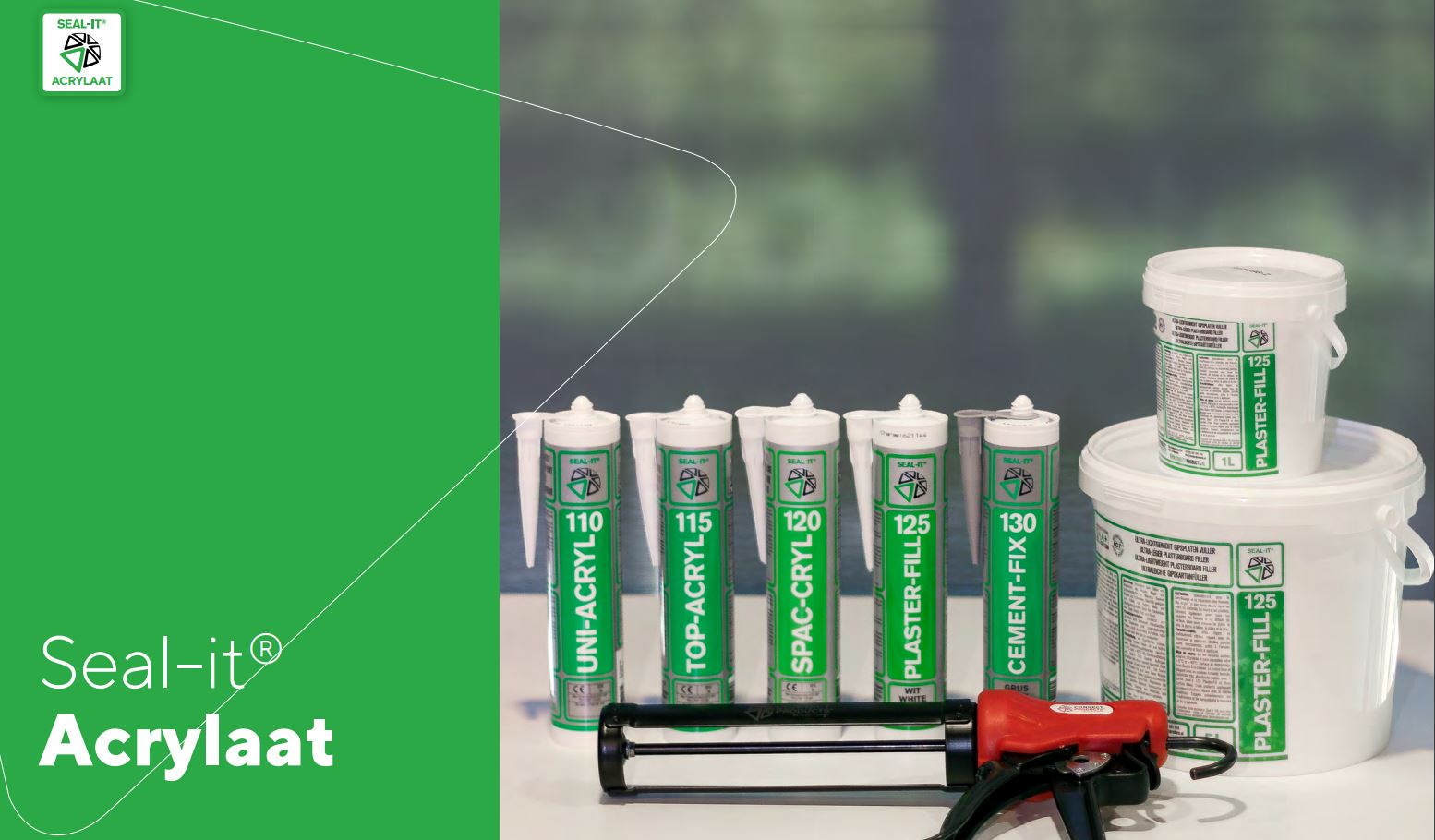 Toepassingen Als regenbestendig voeg-, vul- en reparatiemiddel, voor het dichten, vullen en repareren van voegen, (krimp)naden, kieren, scheuren en gaatjes, buiten waar kans op neerslag is. Specifiek geschikt voor buitenshuis, tevens uitstekend geschikt voor binnen toepassingen. Omtrekvoegen dichten om puien, raam- en deurkozijnen, contactdozen en doorvoeringen. Aansluitvoegen dichten tussen / langs wanden, muren, plafonds, latten, plinten, schroten, trappen, platen, lijsten, profielen, lambriseringen, ornamenten, panelen, vensterbanken, overstekken, boeiboorden, borstweringen en meer. Vullen en repareren van scheuren, krimpnaden, kieren, barsten, boor-, spijker- en schroefgaatjes, in gevels, muren, wanden en plafonds. Aansluitingen tussen metaaldelen afdichten, zoals in luchtkanalen-, carrosserie-, trailer-, scheeps- en containerbouw. Toepasbaar op de meeste ondergronden, zoals hout, multi- en triplex, isolatiematerialen, hard- en zachtboard, verf- en laksystemen, pleister-, stuc-, spuit- en metselwerk, (gas)beton, (kalkzand)steen, gipskarton, metalen en meer. Seal-it® 115 TOP-ACRYL is een direct regenbestendige, subliem overschilderbare en hoogwaardige afdichtingskit, vul- en reparatiemiddel, specifiek voor buitengebruik, op basis van acrylaat dispersie technologie, welke uithardt door waterverdamping uit de massa en zich vormt tot een duurzaam permanent plasto-elastisch blijvend rubber.